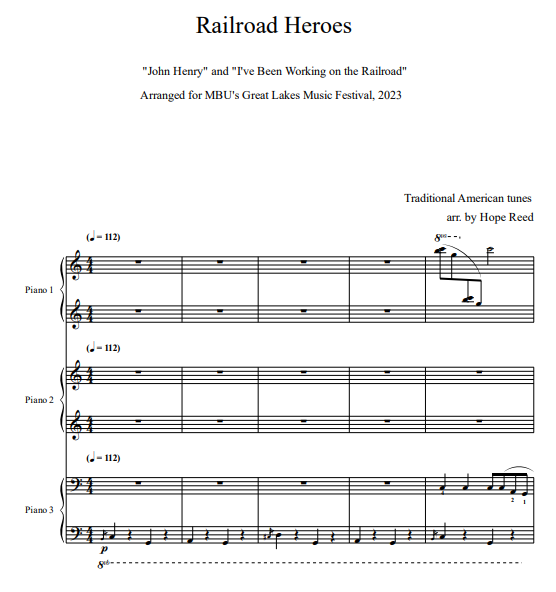 Categories: All HwH Compositions HwH Arrangements All | HwH Compositions | HwH Arrangements | Monthly Travel Fee $20.00 Private Piano Lessons - 60 min. $50.00 Private Piano Lesson - 45 min. $37.50 Reflections on a Summer Evening Sale Price: $2.99 Original Price: $3.99 Sale Railroad Heroes Sale Price: $6.99 Original Price: $7.99 Sale Oh, Susanna! Sale Price: $6.49 Original Price: $7.49 Sale Rattlin' Bog Sale Price: $7.99 Original Price: $9.99 Sale Private Piano Lesson - 30 min. $25.00